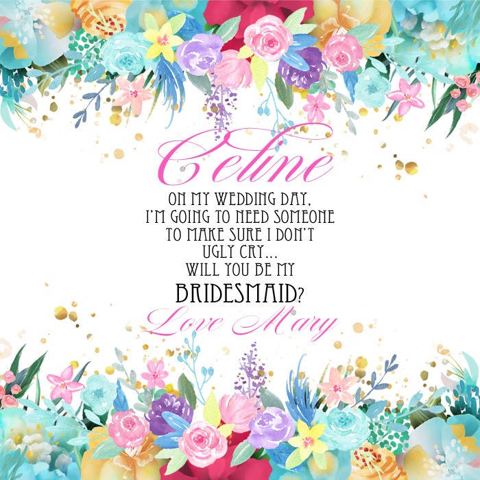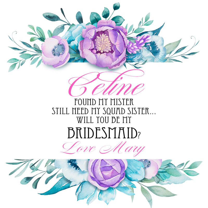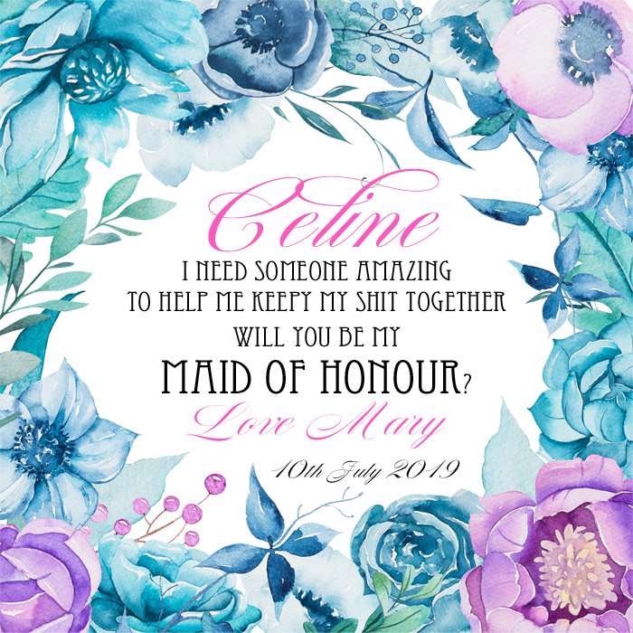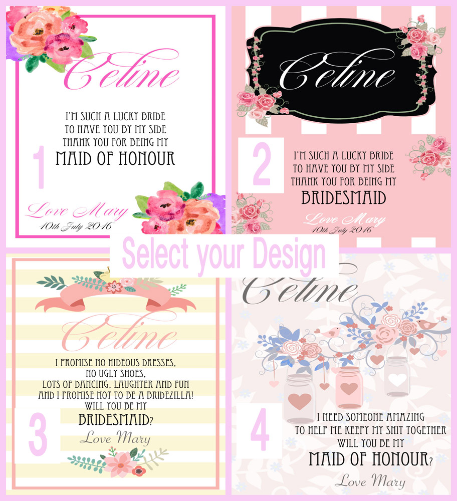 Personalised greeting card for Bridesmaid or Maid of Honour. Can be used to ask someone to be part of your wedding party or to thank them. Various designs to choose from.