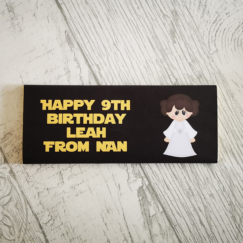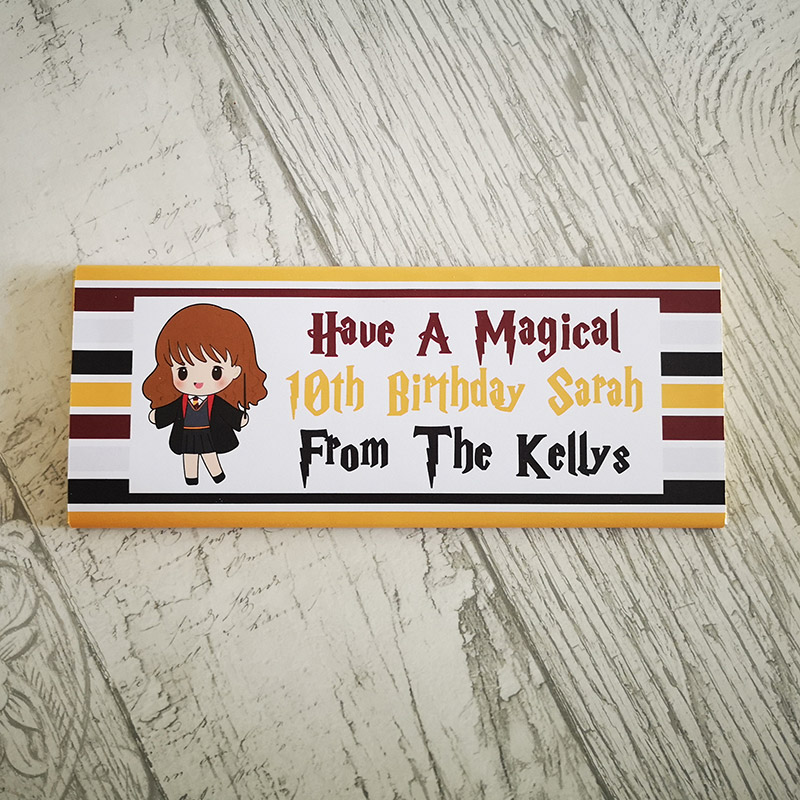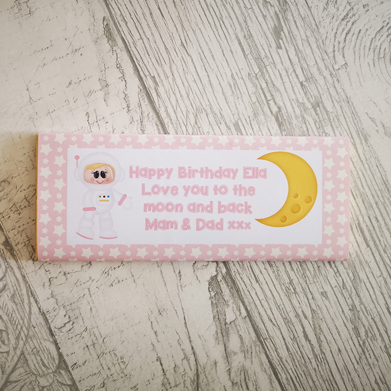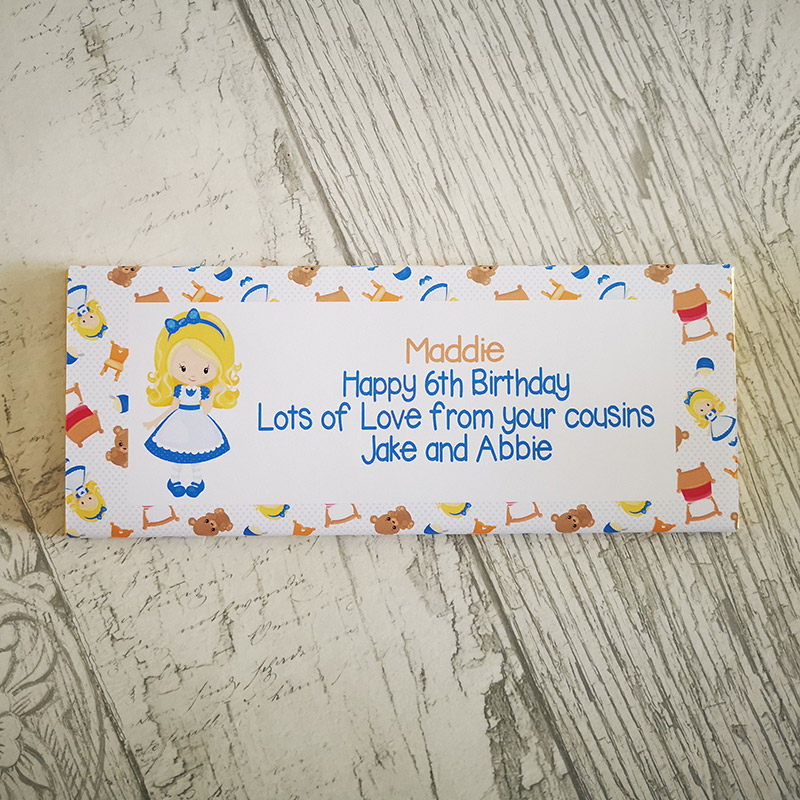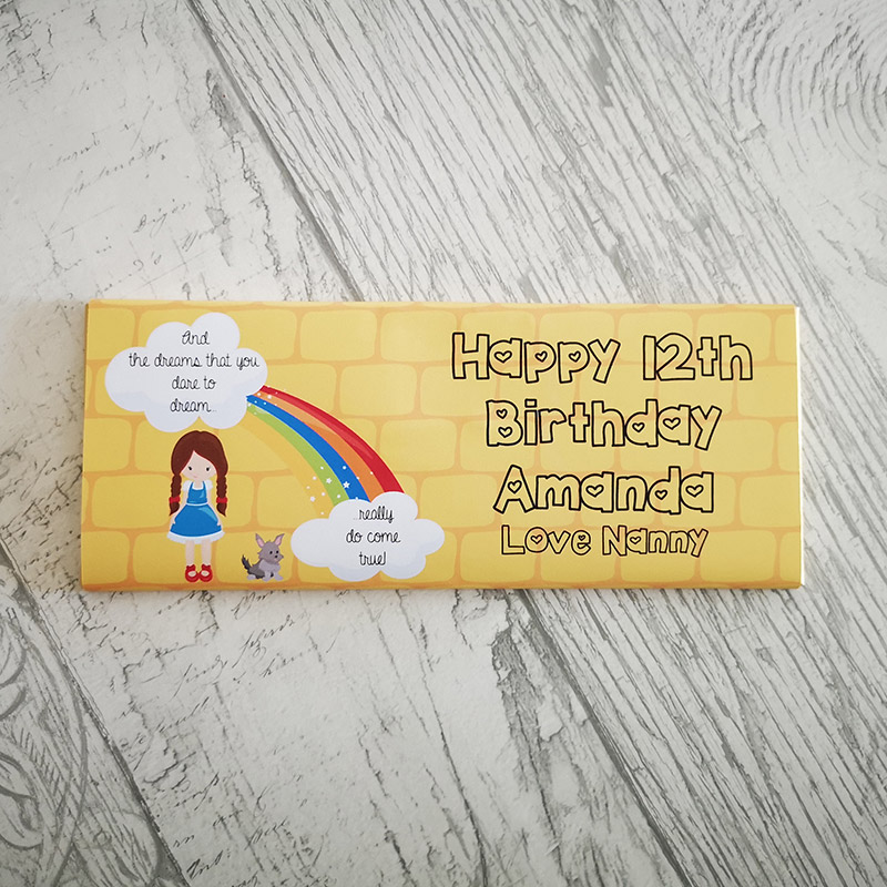 Personalised with your own personalised greeting on bar and on box label. Personalised with recipients name and age on love hearts and badge.