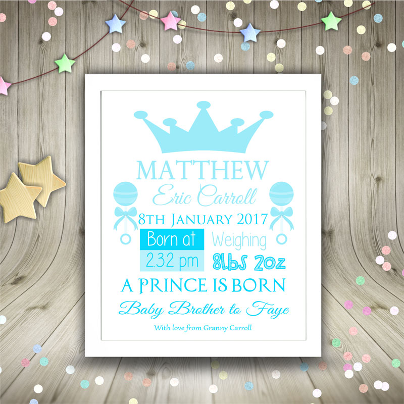 Framed Personalised Print to commemorate the birth of a baby boy.