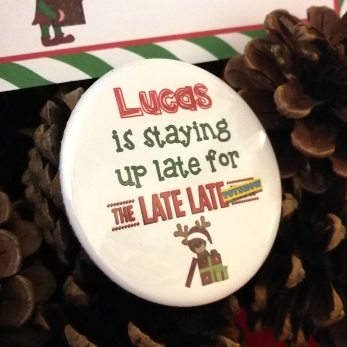 Personalised badge and certificate set to give a child a pass to stay up late for the late late toyshow.