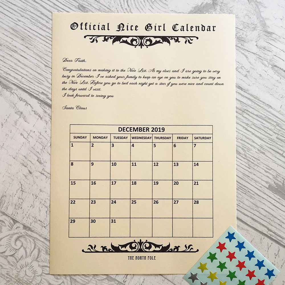 - 1 x Personalised Official Nice Boy / Girl Calendar with stars