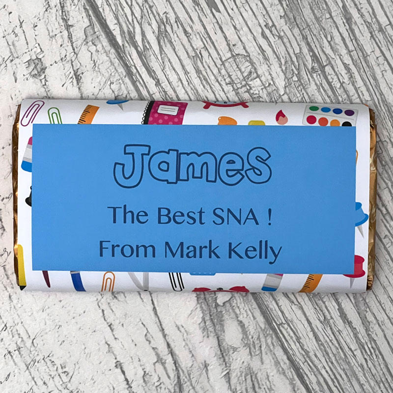 Personalised large chocolate bar with Best SNA design to thank an SNA. We use Galaxy Smooth Milk Chocolate.