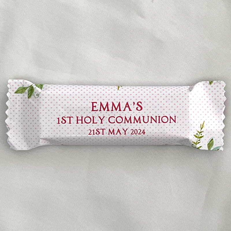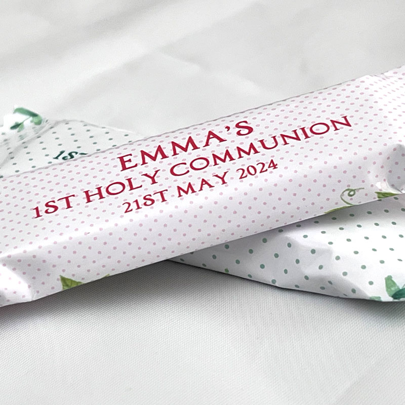 Personalised 2 finger Kit Kat with details of child’s communion day. Watercolour design printed on luxury glossy paper.