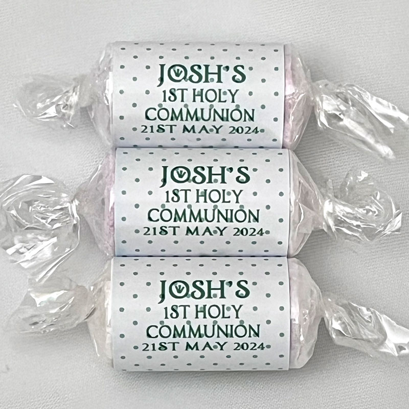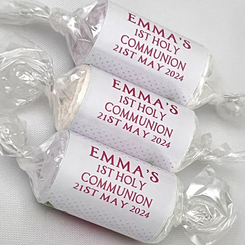 Personalised mini Love Hearts with details of child’s communion day. Watercolour design printed on luxury glossy paper. Price is for 10 packs of mini Love Hearts. Quantity of 1 is for 10 mini Love Hearts, Quantity of 2 is for 20 mini Love Hearts etc.