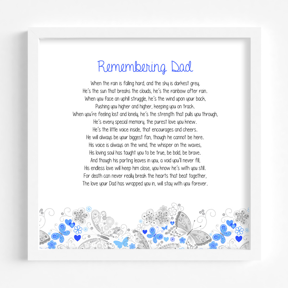 Sentimental Printed Frame to comfort those who may have suffered the loss of a father. Our most popular verses are now available in this alternative design in a white MDF frame.